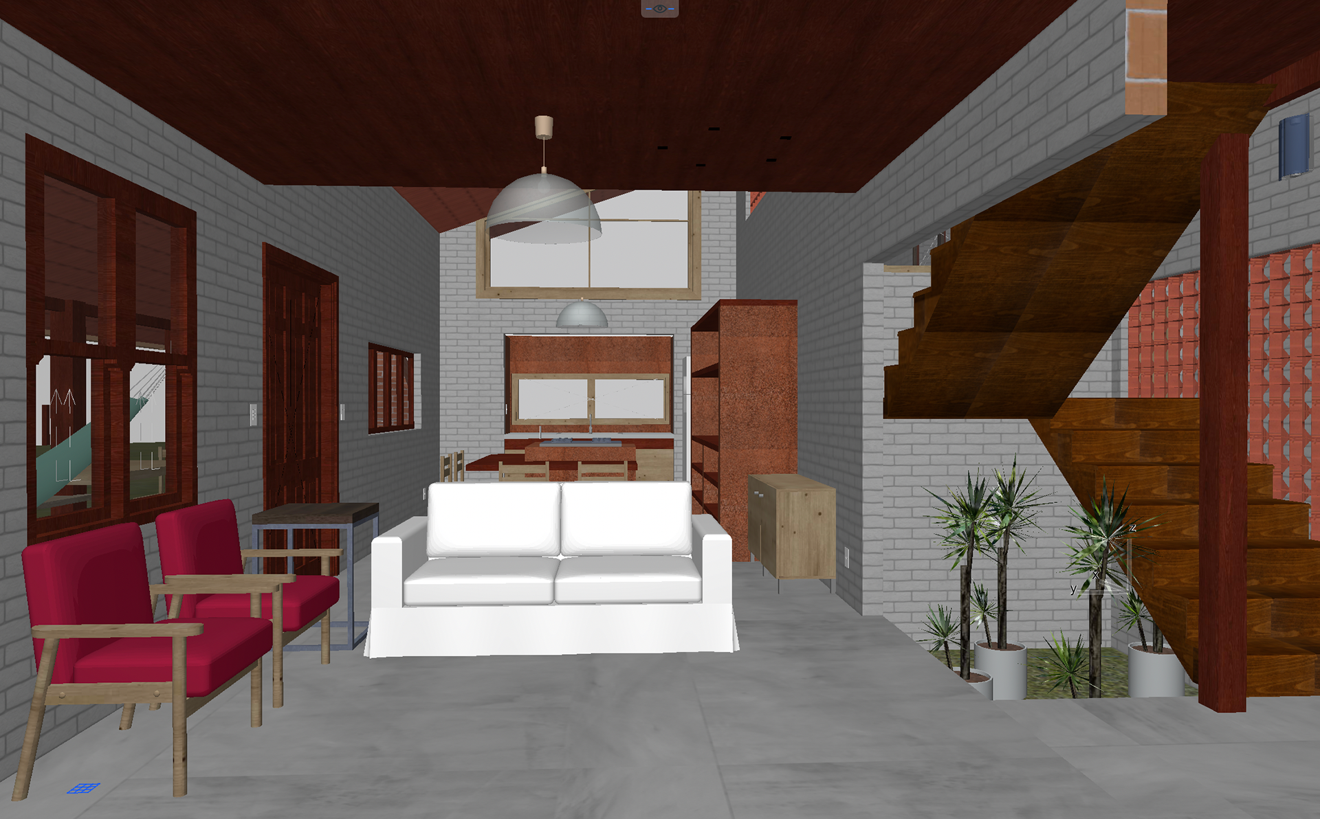 Projeto residencial para uma família que busca um recanto de descanso no litoral norte da Bahia. O desenho da casa atende o desejo dos clientes de construir a casa em etapas, tendo a escada no meio como conexão destes dois "módulos" a serem construídos em momentos diferentes. O projeto é desenhado de acordo com os padrões construtivos do bloco de terra comprimida (conhecido por "tijolo ecológico"), cujas paredes são estruturais e otimizadas em comparação à alvenaria cerâmica argamassada. Os tijolos já estão sendo elaborados no próprio terreno, o que viabiliza esta técnica construtiva.